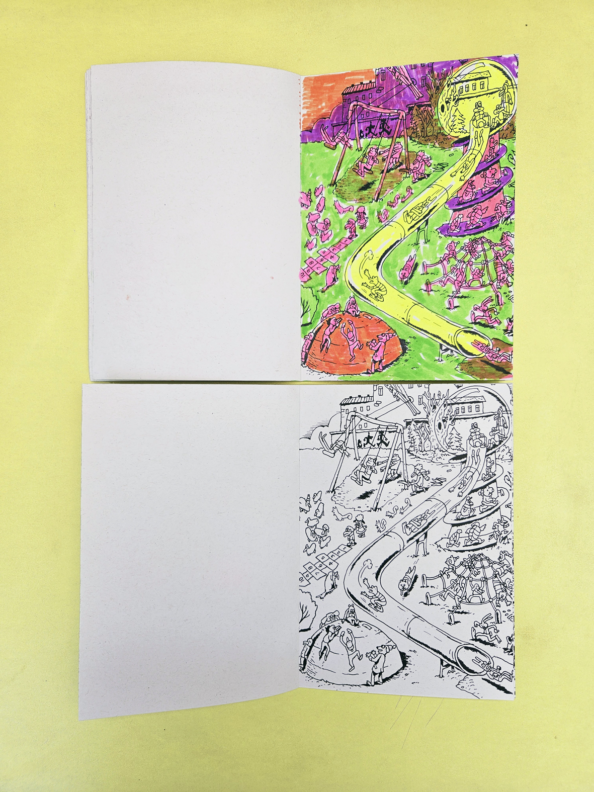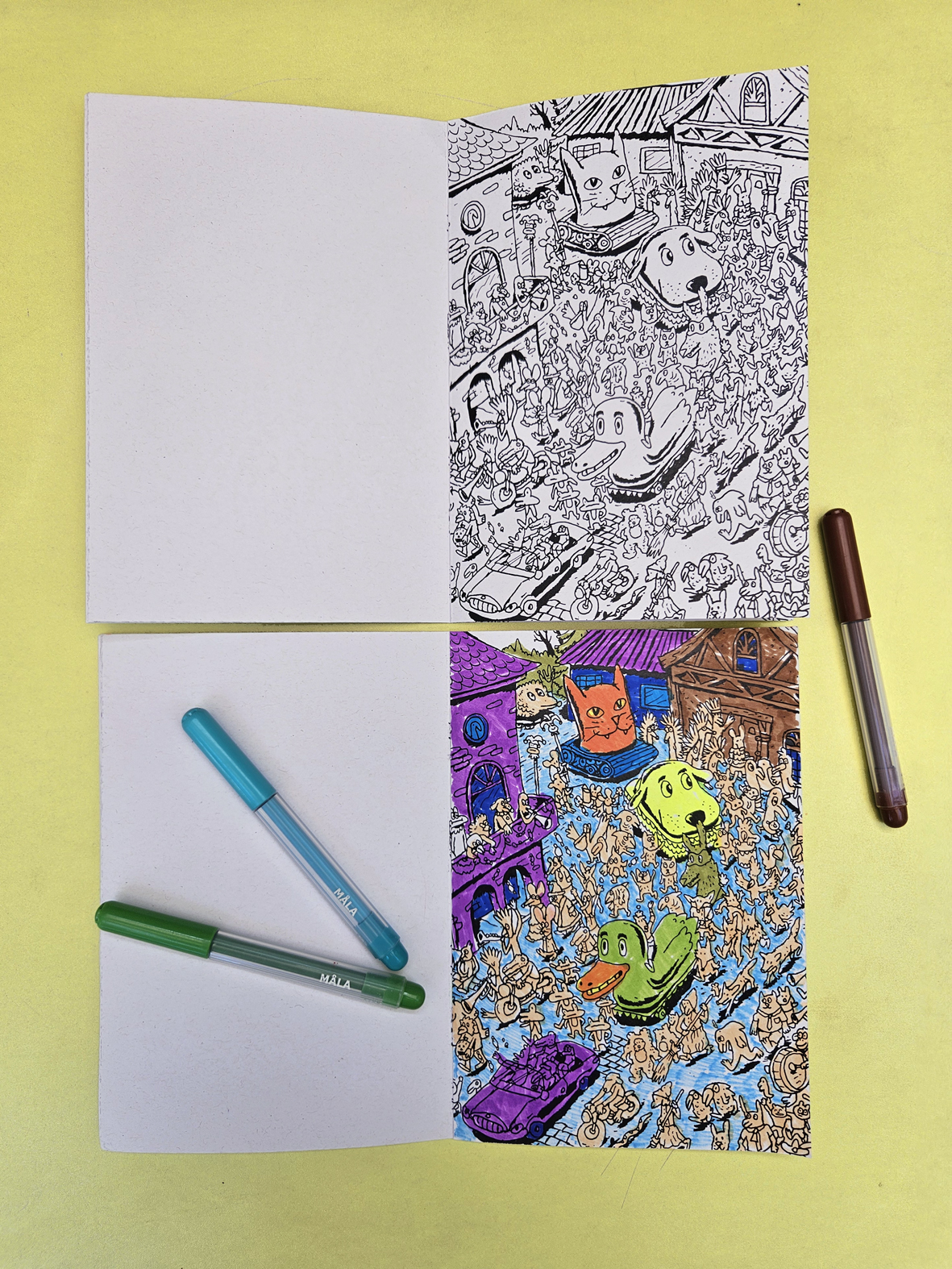 Unser Ausmalbuch ist vollgepackt mit witzigen Wimmelbildern zum Ausmalen, Weitermalen und sogar SELBER-Ausdenken! Lass deiner Fantasie freien Lauf und bring die Bilder mit deinen Lieblingsfarben zum Strahlen. Male die Figuren nach, zeichne sie weiter oder erfinde deine eigenen Geschichten dazu – jede Seite bietet dir viel Platz für deine Kreativität.